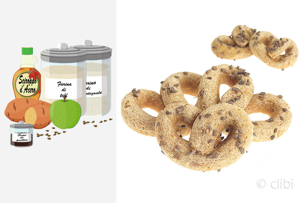 Ciambelline con patate dolci e mela verde aromatizzate all’anice. L’anice ha un sapore molto adattabile, perfetto per piatti dolci e salati. Hanno una mollica con consistenza molto morbida e umida.