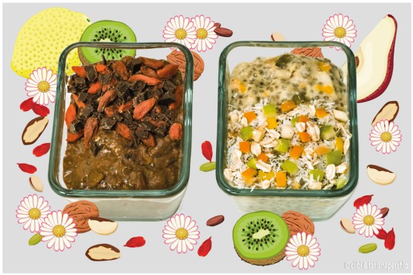 I semi di chia se mescolati con un liquido si gonfiano molto e ci aiutano a creare dessert di diverse consistenze.