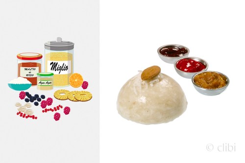A mile halva with three fresh and dried fruit sauces.