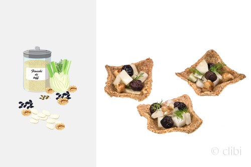 A crumbly tartlet of white beans stuffed with fennel salad, walnuts and cranberries.
