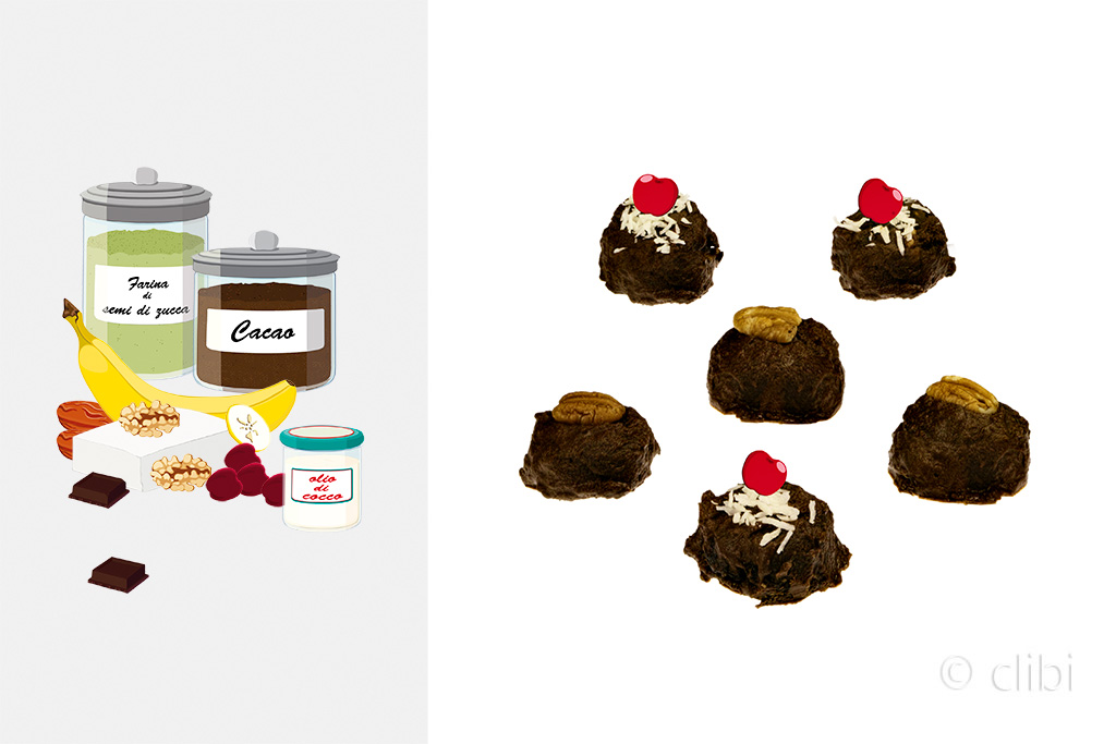 Soft deliciously chocolaty sweets that replace gluten, eggs and refined sugar with ingredients surprisingly tasty as dried cherries, nuts, licorice, star anise seeds and flour unroasted pumpkin seeds with a delicate flavor rich in fiber and protein.